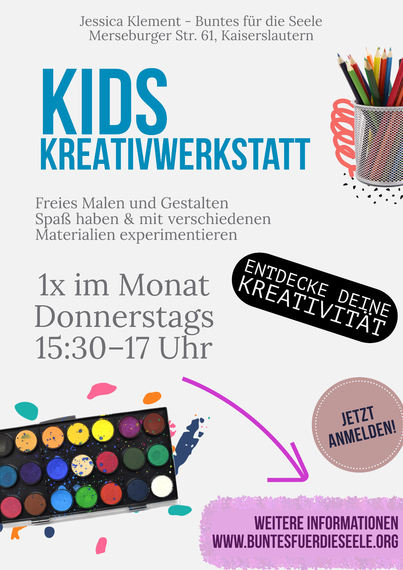 Lust den Pinsel zu schwingen, Farben und deine Ideen einfach so ohne Vorgaben aufs Papier zu bringen? Dich kreativ auszuleben ohne Benotung und Bewertung?